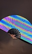 Deze geweldige waaier is perfect voor indoor festivals! De waaier lijkt namelijk grijs, maar probeer er maar eens een foto met flits van te maken, dan zie je pas hoe prachtig regenboog holografisch reflecterend hij is! De waaier heeft een toffe reflectie, die helemaal oplicht met het flitslicht.