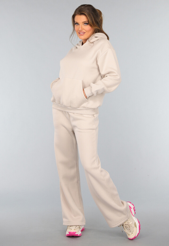 Beige Hoodie Set met Wijduitlopende Broek Lees meer.
