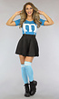 Dit te gekke pakje bestaat uit een T-shirt met de M erop. Hierbij zit een zwarte skater rok waar je de bijgeleverde bretels aan kunt bevestigen. Om de look af te maken kan je de bijgeleverde kousen erbij dragen.