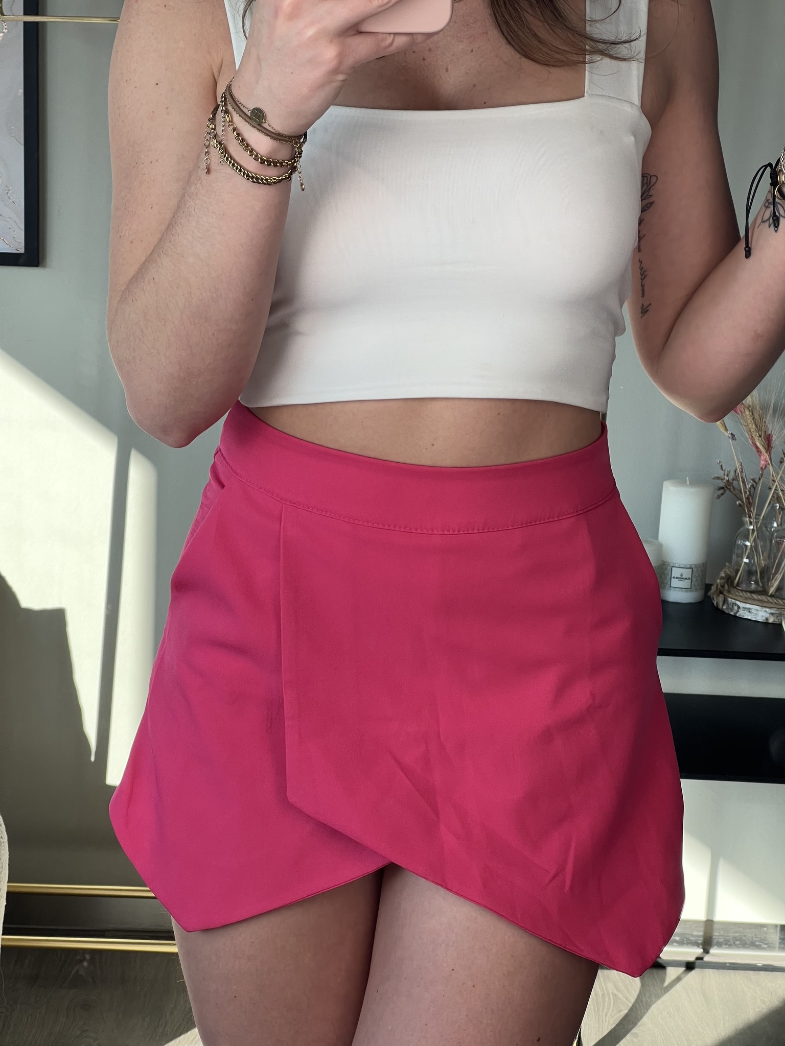 Basics zijn altijd fijn om in je kast te hebben. Een basic skort kun je namelijk altijd op heel veel verschillende manieren dragen. Style deze skort met een statement top zoals een roze blouse, een blauwe body, een geprinte top of een paar over the top laarzen voor een lekker opvallend lookje. Deze look is perfect voor een festival en daarnaast ook gezellig voor de zomer! Hou je meer van een basic lookje? Dan kun je deze skorts ook ontzettend leuk stylen met een andere basic kleur zoals wit, bruin of zwart. Zo houd je je outfit lekker neutraal en clean zonder al teveel gekke details. Je kunt met een basic skort dus écht alle kanten op!