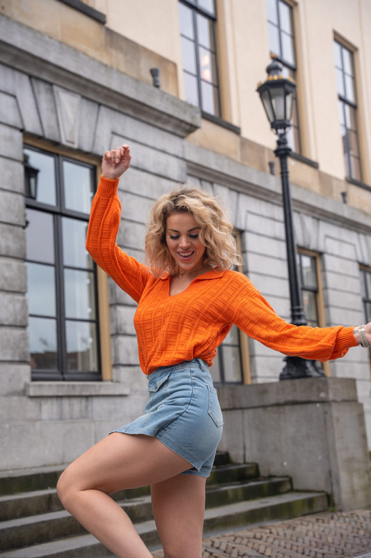 Voor de koudere dagen of avonden zijn truien en vesten in het oranje ideaal. Ze houden je warm terwijl je juicht voor Nederland en zien er ook nog eens super stijlvol uit. Kies voor een oversized trui voor een comfy look, of ga voor een getailleerd vestje als je liever iets netter gekleed gaat.