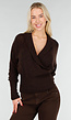 Deze bruine gebreide wrap trui heeft een diepe V-hals, een omgeslagen wikkelmodel en lange mouwen. De trui heeft een brede geribde tailleband waardoor het silhouet mooi aansluit. Het knit-design geeft een warme, zachte en comfortabele uitstraling.