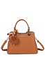 Deze bruine handtas is uitgevoerd in een rechthoekige vorm en heeft een subtiel geruit reliëfpatroon. De tas meet circa 31 cm breed, 22 cm hoog en 13 cm diep en weegt 0,8 kg. Aan de voorzijde is een pompon en een gekleurd sjaaltje bevestigd aan de hengsels. De tas beschikt over twee stevige handvatten en een afneembare, verstelbare schouderband. Aan de achterkant bevindt zich een zichtbare ritssluiting, terwijl de onderzijde is voorzien van vier goudkleurige beschermdopjes. De goudkleurige accenten en hexagonale bevestigingsringen bij de hengsels maken het ontwerp compleet. Bij de tas wordt ook een lang hengsel geleverd.