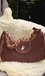 Deze bruine schoudertas is uitgevoerd in suède en omlijst met een beige bontafwerking langs de randen. De tas heeft een korte schouderband met gouden kettingschakels die omwikkeld zijn met zachte stof. De voorzijde is voorzien van een flap met goudkleurige draaisluiting, terwijl de bovenzijde ook een ritssluiting heeft voor extra veiligheid. De halfronde vorm en de mix van materialen geven dit model een opvallend karakter. Het subtiele gebruik van bont en metaal zorgt voor een luxe afwerking die geschikt is voor dagelijks gebruik of avondlooks. Bij deze tas zit ook een extra lang hengsel.