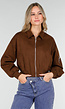 Deze donkerbruine jas van suèdelook-materiaal heeft een korte pasvorm met een ritssluiting aan de voorkant. De jas is voorzien van steekzakken en een extra zakje met rits op de mouw voor een stoere touch. De zachte stof met suède-effect geeft de jas een luxe uitstraling en voelt comfortabel aan. Perfect te combineren met jeans of een pantalon voor een stijlvolle look.