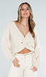 Deze crèmekleurige gebreide trui is gemaakt van een zachte wolmix met een fluffy uitstraling en comfortabele stretch. Het model heeft een diepe V-hals en een speelse twist aan de voorzijde voor een vrouwelijke look. De lange mouwen en de losvallende pasvorm zorgen voor een comfortabele fit. De trui kan ook achterstevoren gedragen worden, waardoor er een stijlvolle open rug ontstaat.