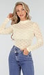 Crème kleurigekanten top met hoge ronde hals en lange mouwen. De doorschijnende kantstof zorgt voor een elegante uitstraling. Dankzij de stretch sluit de top mooi aan op het lichaam.