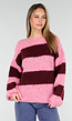 Deze wollen trui in roze en bordeaux heeft brede strepen en een zachte, grofgebreide structuur. Het model valt comfortabel en los, met lange mouwen en een cozy uitstraling. Perfect voor dagelijkse en casual outfits tijdens koelere dagen.