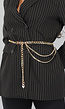 Deze riem is goud en heeft een ketting look en is helemaal te verstellen. Doordat de gehele riem namelijk een ketting is kan je deze zo strak doen als voor jou goed is. Hij is voorzien van drie extra detail chains.