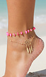 Dit schattige enkelbandje heeft twee lagen met elk een eigen uitstraling. De ene laag is met subtiel roze steentjes, de andere met een dromenvanger en veer detail voor een boho vibe. Het enkelbandje is voorzien van een karabijnsluiting, wat zorgt voor een stevige en comfortabele fit.