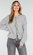 Dit grijze vest is uitgevoerd in een grofgebreide stof en heeft een losvallende pasvorm. Het model heeft lange mouwen met brede ribboorden. De voorzijde sluit met drie strikdetails die door middel van gebreide koorden zijn aangebracht. De zoom valt recht en reikt tot op de heup.