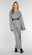 Deze grijze two piece set bestaat uit een losvallende top en een bijpassende rechte broek. De top heeft wijde mouwen, een ronde hals en een soepele, oversized pasvorm. De broek heeft een elastische tailleband en een recht vallend model, wat zorgt voor optimaal draagcomfort. De zachte, rekbare stof geeft de set een comfortabele fit en een elegante uitstraling. De set wordt geleverd met een bijpassende riem waarmee de taille geaccentueerd kan worden, ideaal om de look net wat meer vorm te geven. Een veelzijdige set die zowel casual als gekleed gedragen kan worden.
