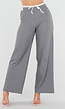 Grijze pantalon met een elegante en comfortabele uitstraling. De broek heeft een rechte, licht wijde pijp en is gemaakt van een soepele stof met stretch voor extra draagcomfort. In de taille zit een contrasterende witte tailleband met trekkoord waarmee de pasvorm eenvoudig aangepast kan worden. De pantalon heeft steekzakken aan de voorkant en een blinde ritssluiting aan de zijkant.