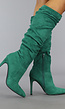 Groene Geplooide Laars met Stiletto Hak Lees meer.