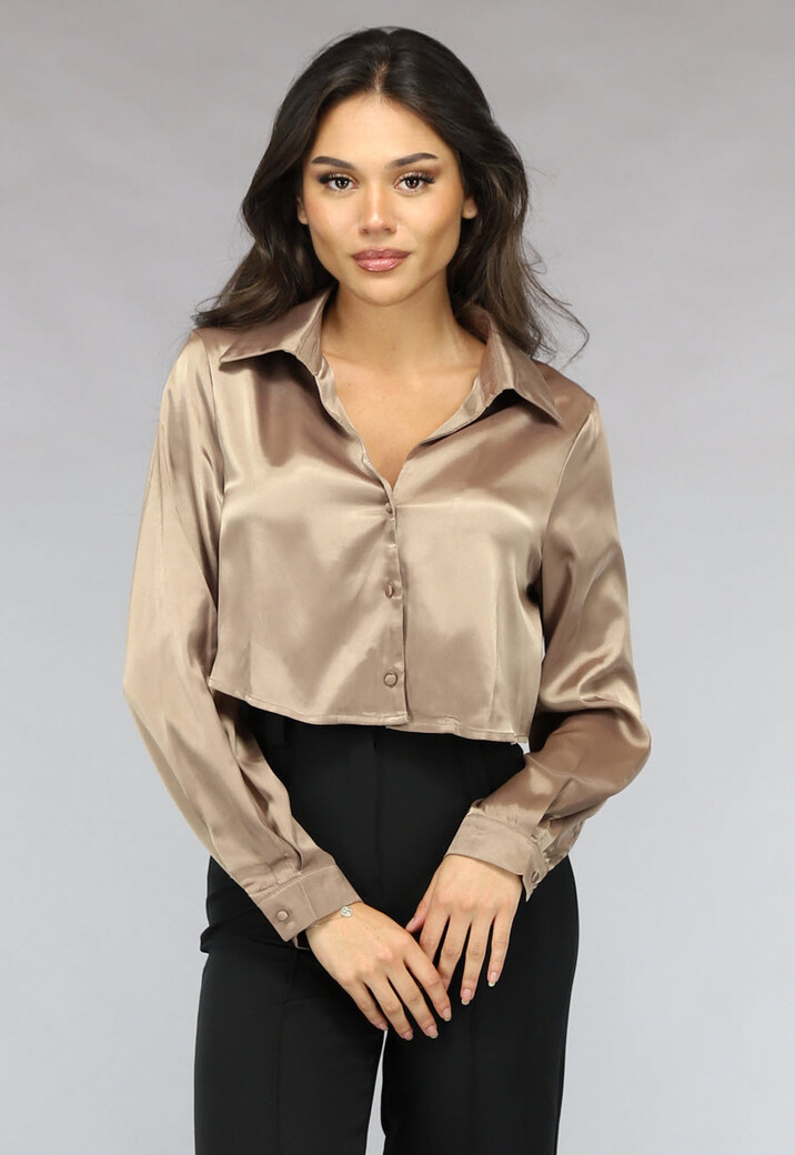 Khaki Cropped Blouse met Knoopsluiting Lees meer.