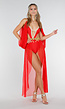 Exotisch rood buikdanseres kostuum met transparante chiffon rok en gouden sierdetails. De body is gemaakt van zachte stretchstof voor een comfortabele, aansluitende pasvorm. Het model heeft een diepe V-hals met gouden biezen, open schouders en een decoratieve tailleband met muntapplicaties die sierlijk meebewegen. De luchtige rok zorgt voor een elegante uitstraling bij elke beweging. Ideaal voor themafeesten, dansoptredens of Halloween.