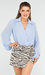Deze prachtige babyblauwe body combineert elegantie en comfort. Met lange pofmouwen en een chic kraagdetail zorgt het voor een verfijnde uitstraling. De zachte, lichtgewicht stof is ademend en zorgt ervoor dat je je de hele dag heerlijk voelt. De body heeft een handige sluiting onderaan met 3 standen haakjes, waardoor het aan- en uittrekken eenvoudig is. De stoffen mouwen zijn licht elastisch en see-through.