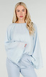 Deze blouse is uitgevoerd in een lichtblauwe pastel tint met een soepelvallende stof. Het model heeft een ronde halslijn met subtiele plooien aan de voorzijde. De blouse is voorzien van lange, wijde mouwen met een extra brede manchet voor een gelaagd effect. De pasvorm is losvallend en valt soepel over het lichaam. Aan de achterzijde sluit de blouse met een kleine knoopsluiting in de nek. De onderzijde is licht afgerond en valt tot op de heup.