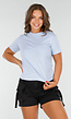 Deze blauwe top is ontworpen als een basic T-shirt met korte mouwen en een losvallende pasvorm. De stof bevat stretch, waardoor hij meebeweegt. De top heeft een ronde hals en rechte zoom. De mouwen vallen halverwege de bovenarm. Dankzij de combinatie van rekbaarheid en ruimvallend pasvorm is de top geschikt voor dagelijks gebruik of als onderlaag bij andere kledingstukken.