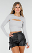 Deze bolero crop top heeft een lichtgrijze kleur en valt boven de borst. Hij heeft een ronde hals met lange mouwen. Aan de uiteindes van de mouwen is hij voorzien van duimgaten. Deze top is perfect voor festivals of zomerdagen! De top waar de bolero mee gecombineerd is dient besteld te worden, deze zit er niet bij.