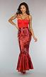 Metallic Zeemeermin Rok in Rood met Schubbenpatroon Lees meer.