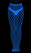 Deze netpanty is wit van kleur bij daglicht en transformeert naar felblauw in het donker dankzij het glow-in-the-dark effect. Het ontwerp bestaat uit een grof netpatroon met grote openingen. De panty heeft een aansluitende pasvorm. Aan de bovenkant heeft een dikke elastische tailleband.