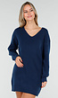 Deze petrol gebreide trui jurk heeft een zachte, warme stretchstof en een comfortabele losse pasvorm. De V-hals aan de voorkant zorgt voor een elegante uitstraling, terwijl de rug is afgewerkt met een satijnachtige strik.