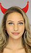 Maak je party outfit compleet met een bijpassende diadeem. Dit item is voorzien van rode duivelsoortjes van vilt met zilveren ringetjes er doorheen.