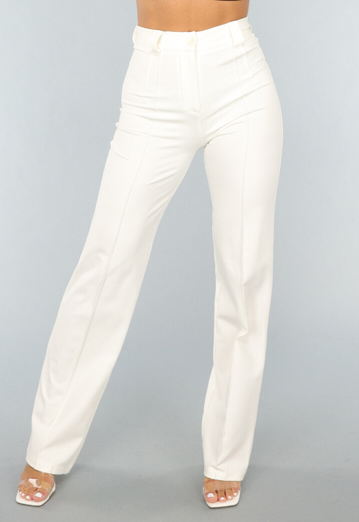 Rechte Aansluitende Cream Pantalon met Stretch Lees meer.