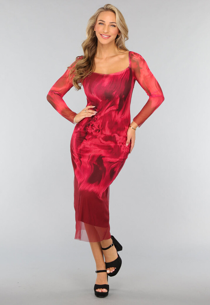 Rode Longsleeve Mesh Jurk met Marble Print Lees meer.