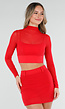 Deze top is gemaakt van een strechy mesh stof waardoor hij een mooie doorschijnende look heeft. Binnenin de top is een sport-bh ingewerkt zodat je zelf niks eronder hoeft te dragen. Deze sport-bh heeft ingewerkte pads waardoor het dragen van een bh overbodig is. De top heeft lange mouwen en een hoge kraag en aan de onderzijde is hij voorzien van een brede elastische band.