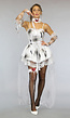De jurk is voorzien van vieze vlekken. De jurk heeft spaghettibandjes. Het bovenlijfje van de jurk is voorzien van kanten details. De jurk is elastisch en daardoor gemakkelijk aan en uit te trekken. De rok is gelaagd van meerdere soorten stof. Er wordt een schuifspeld met sluier meegeleverd om het kostuum helemaal af te maken.