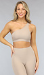 Taupe One Shoulder Sporttop met Uitneembare Pads Lees meer.