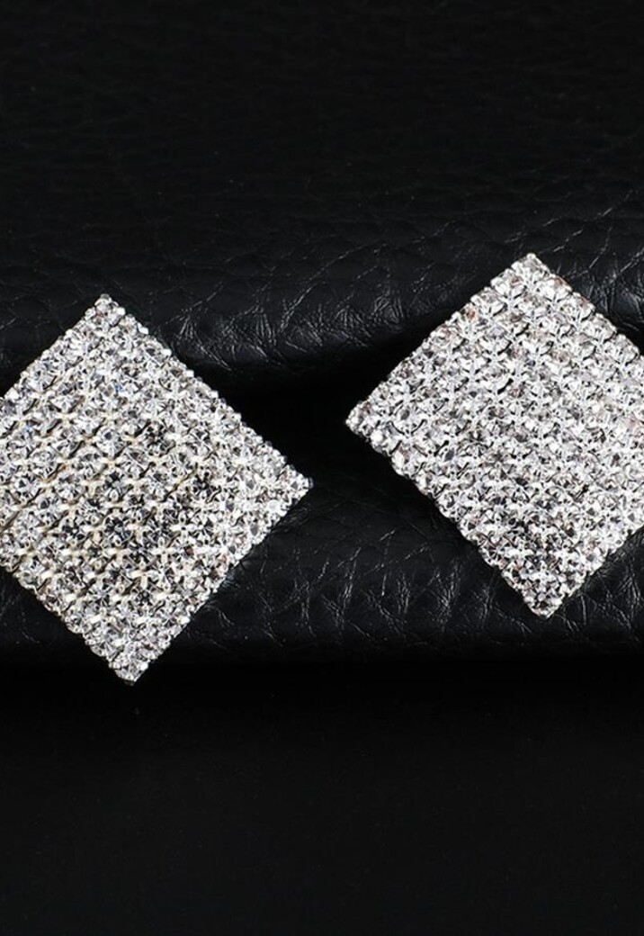 Deze oorbellen hebben een vierkant model welke versierd is met meerdere kleine strass steentjes. Om de kwaliteit van de oorbellen optimaal te houden raden wij af ermee te douchen en ze bloot te stellen aan water.