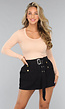 Deze top is gemaakt van een zachte stretch stof. De top is voorzien van een ronde halslijn en heeft lange mouwen. Bovendien sluit de top mooi aan en valt hij iets korter.