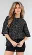 Zwart T-shirt met luipaardprint en een rechte pasvorm. Het model heeft korte mouwen en een ronde halslijn. Het T-shirt valt losjes langs het lichaam.