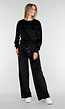 Deze 2-piece set is gemaakt van een zwarte velours stof met een zachte glans. Het bovenstuk heeft een ronde halslijn, lange mouwen en geribde boorden. De broek heeft een losvallend silhouet met rechte, wijde pijpen en een elastische tailleband met strikkoord. De stof voelt zacht aan en heeft stretch.