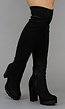 Trefwoorden: laarzen, lange laarzen, zwarte laarzen, suède-look laarzen, fashion laarzen, trendy laarzen, overknee laarzen, laarzen met grove zool, blokhak laarzen, plateau laarzen