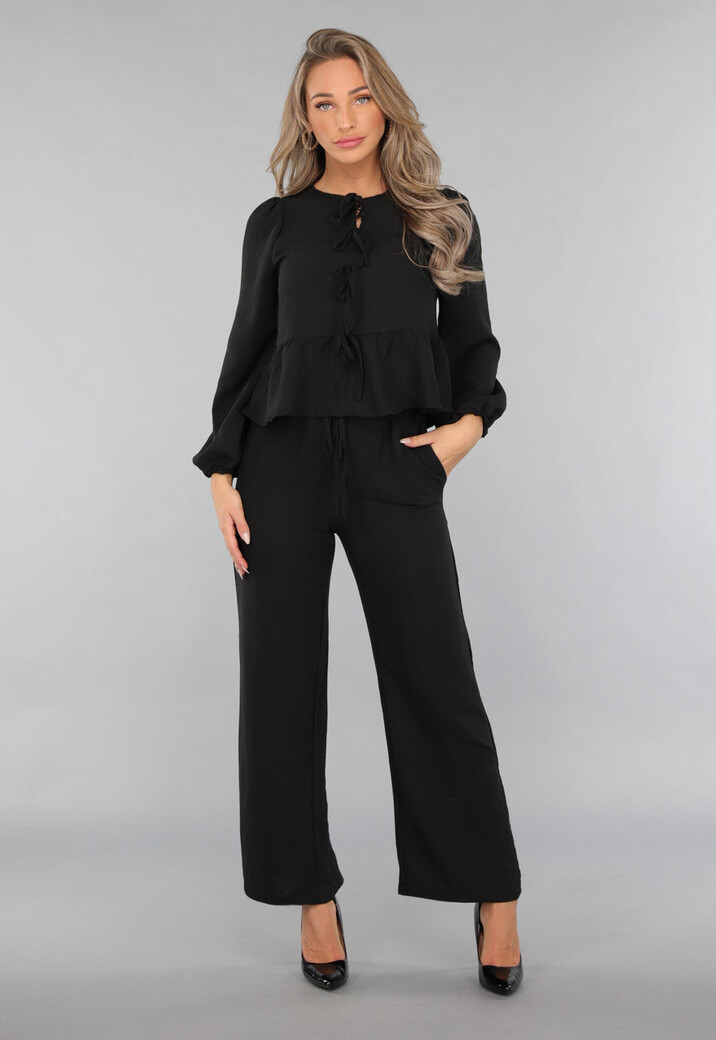 Zwarte Linnenlook Two Piece met Strikjes Lees meer.