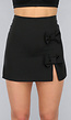 Deze skort is gemaakt van een stevige stof en heeft geen stretch. De skort heeft een high waist model. Je kunt de skort gemakkelijk aan- en uittrekken met de blinde ritssluiting in de zij. Wat de skort een unieke look geeft, is de kleine split met twee schattige strikjes op de voorkant.