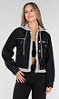 Deze jas is uitgevoerd in zwart denim en heeft een aangezette grijze capuchon met aantrekkoord. Het model heeft een ritssluiting met drukknoopsluiting, ritszakken op de borst en lichte slijtdetails. De afwerking met grijs sweatermateriaal aan de binnenkant zorgt voor een sportieve uitstraling.