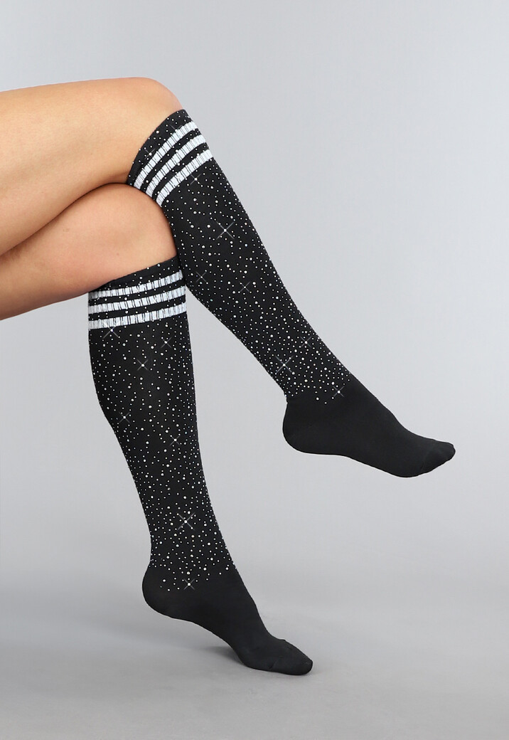 Zwarte Strass Sokken met Witte Strepen