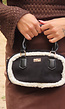 Deze zwarte handtas is gemaakt van suède en afgewerkt met een witte teddy bontbies langs de randen. Het ontwerp beschikt over twee stevige handgrepen zwart kunstleer en een afneembaar, extra lang schouderhengsel, zodat de tas zowel in de hand als crossbody gedragen kan worden. De bovenzijde is voorzien van een goudkleurige ritssluiting en goudkleurige ringen. Dankzij de compacte vorm is de tas perfect voor jouw daily essentials.