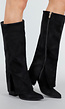 Deze zwarte laarzen in suède-look hebben een hoge pasvorm en een elegante split aan de zijkant. De stevige blokhak biedt stabiliteit en een verfijnde uitstraling. Dankzij de ritssluiting aan de binnenkant zijn ze eenvoudig aan te trekken.