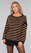 De trui heeft een wijde ronde halslijn waardoor je hem ook off shoulder kan dragen. Tevens beschikt hij over lange mouwen welke wijd uitlopen. De trui heeft een streep patroon en valt lekker oversized. Deze trui is heerlijk voor de koudere dagen!